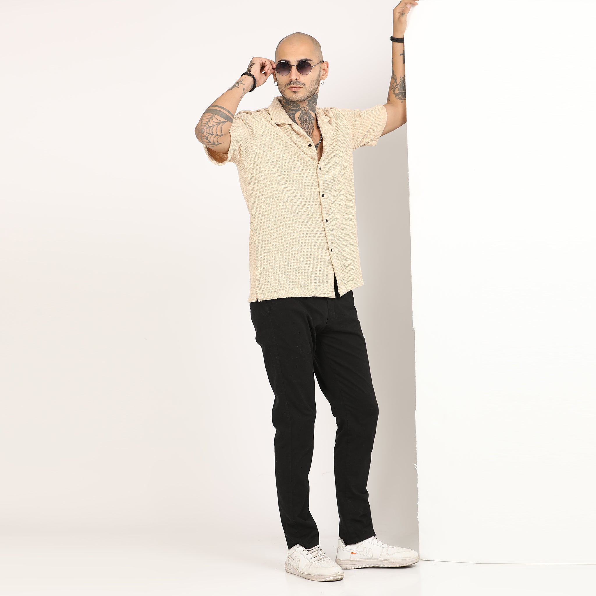 Upgrade your wardrobe with our Knitted Casual Half Sleeve Shirt, designed for a perfect balance of relaxed sophistication and breathable comfort. Whether you're dressing up or keeping it casual, this shirt is a versatile essential.