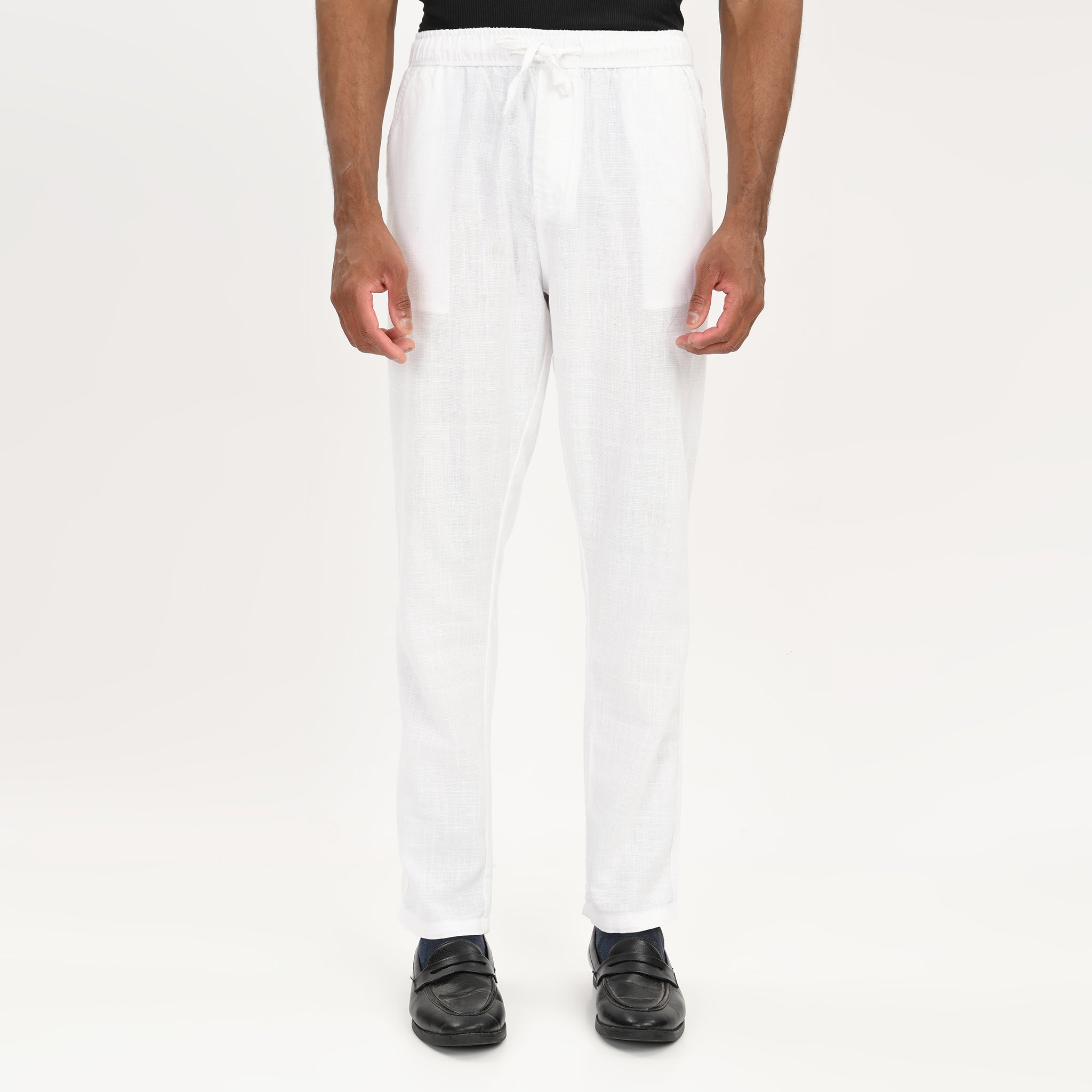 Step into effortless comfort with these casual linen drawstring trousers, designed for everyday wear. Featuring an elastic waistband with an adjustable drawstring, they provide a relaxed yet secure fit. The straight-cut design with practical side pockets adds both style and functionality, making them a versatile pick for casual outings, travel, or laid-back weekends.