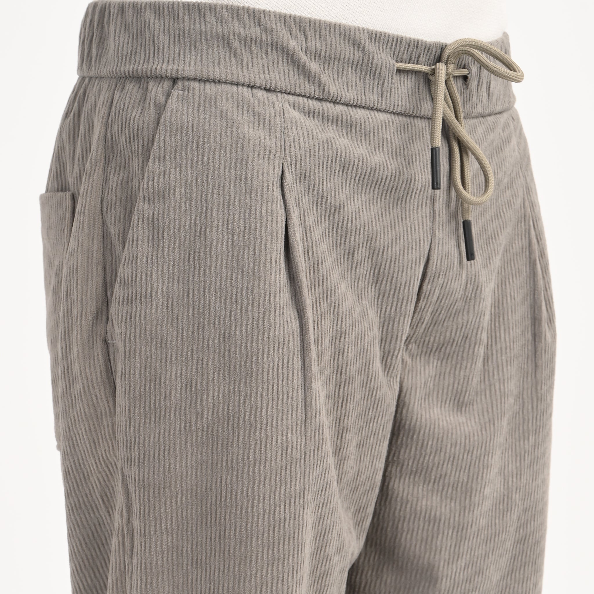 Stay effortlessly stylish and comfortable with these corduroy drawstring trousers, perfect for everyday wear. Made from soft, textured fabric, they feature a relaxed fit with a modern tapered leg, combining laid-back ease with a touch of sophistication. The elasticated waistband with an adjustable drawstring ensures a customized fit, while the side pockets add functional convenience. Pair them with sneakers and a tee for a casual look or dress them up with a shirt for a smart-casual vibe.