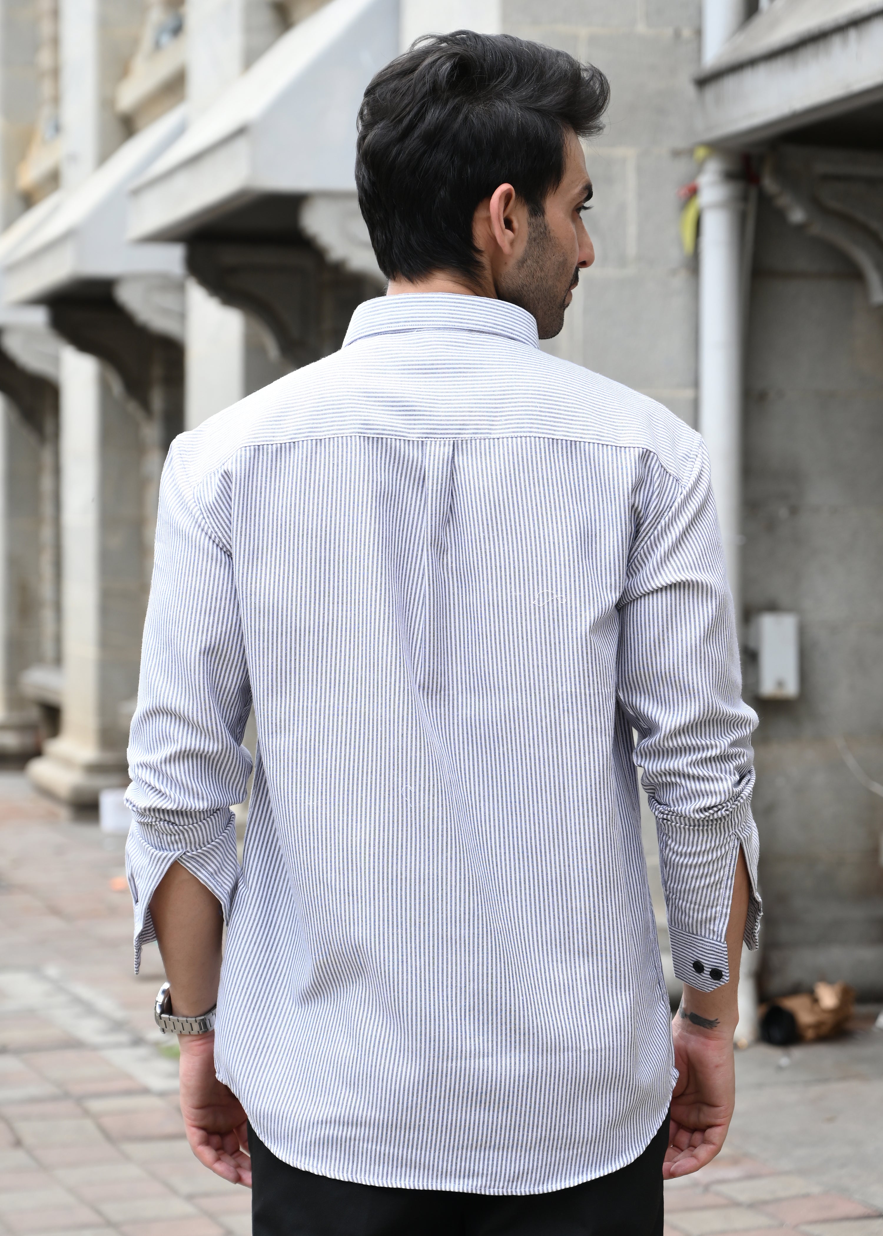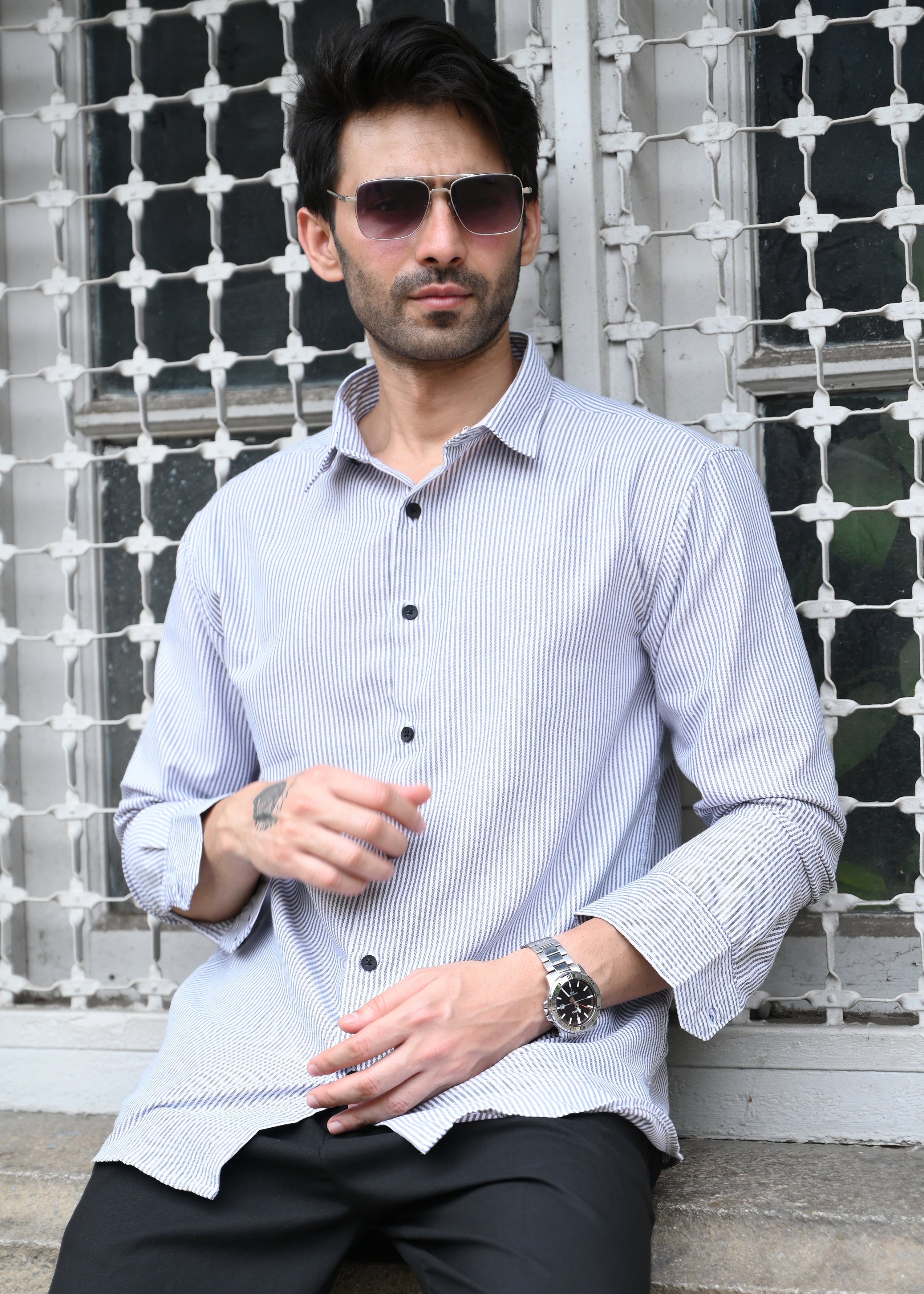 Elevate any wardrobe with the Pinstripe Long Sleeve Shirt, crafted for style and comfort in every moment. This shirt features a soft beige base delicately patterned with fine vertical pinstripes, offering a refined take on classic menswear. Designed with a modern tailored fit, it boasts a full button-front and traditional spread collar—perfect for layering or standalone sophistication.