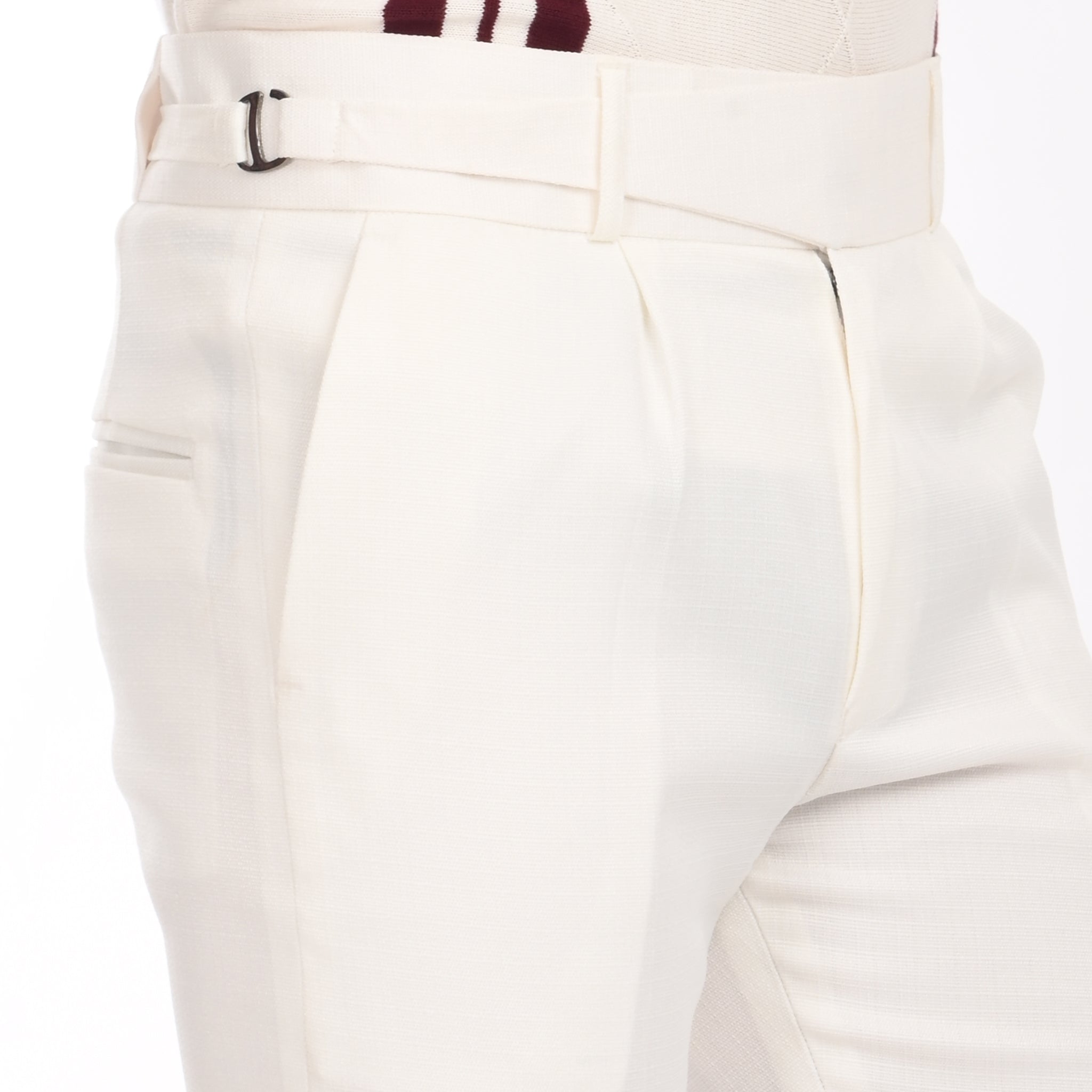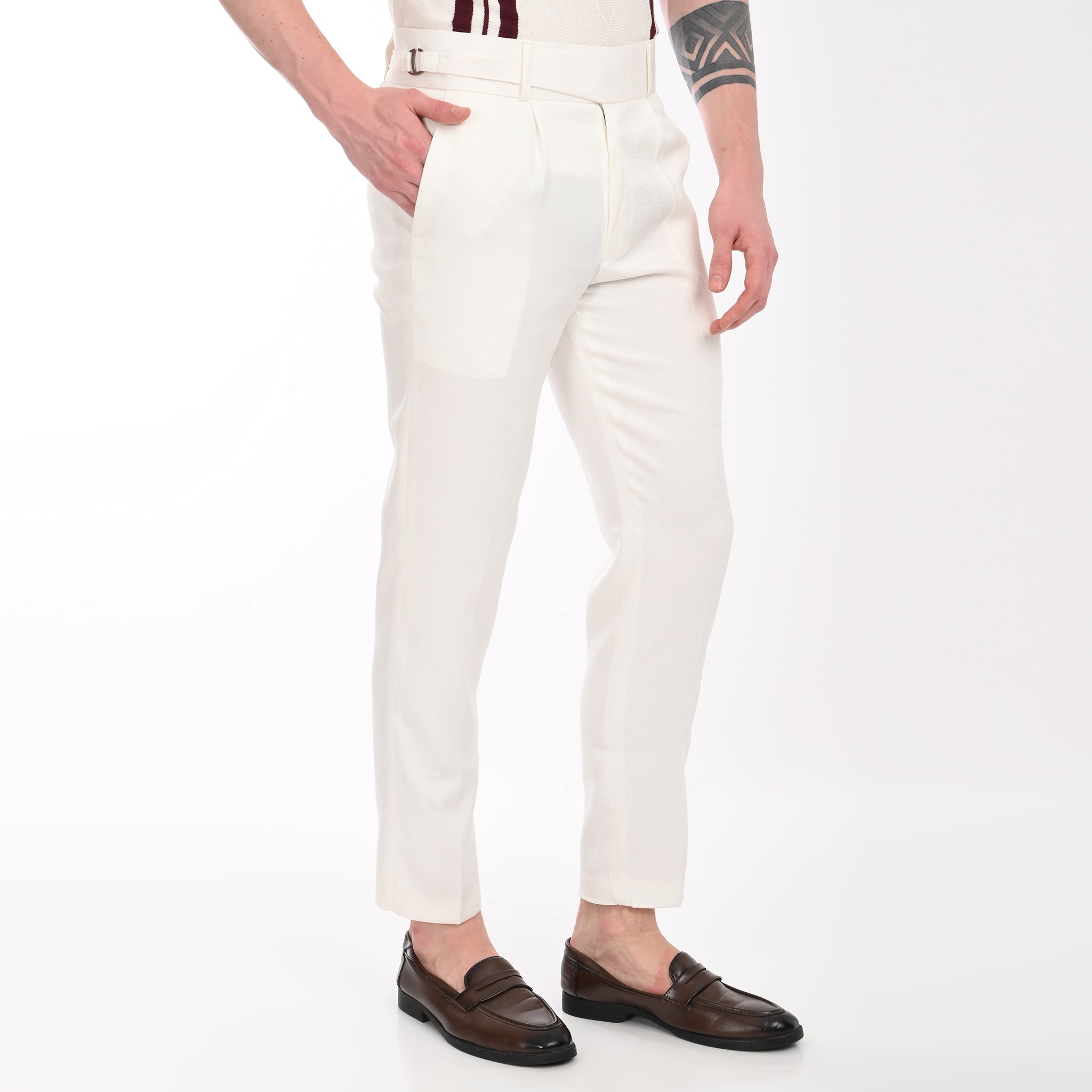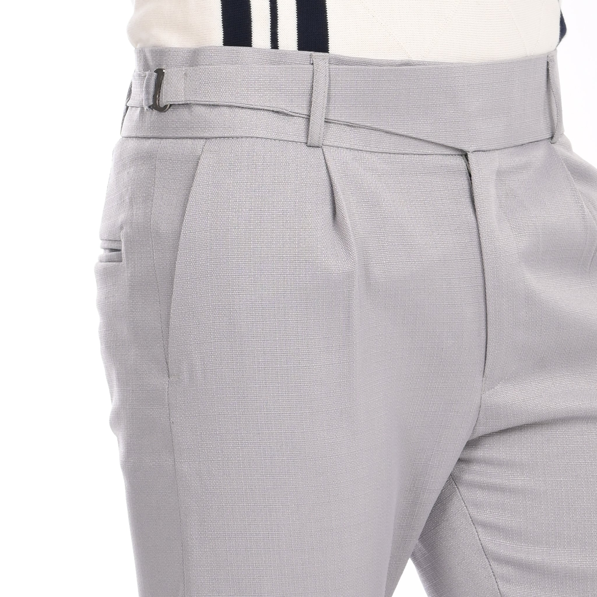 Refine your formal wardrobe with these Gurkha Pants designed for the modern gentleman. Featuring distinctive double-buckle side adjusters and a high-rise waist, they offer a timeless blend of heritage style and contemporary tailoring.