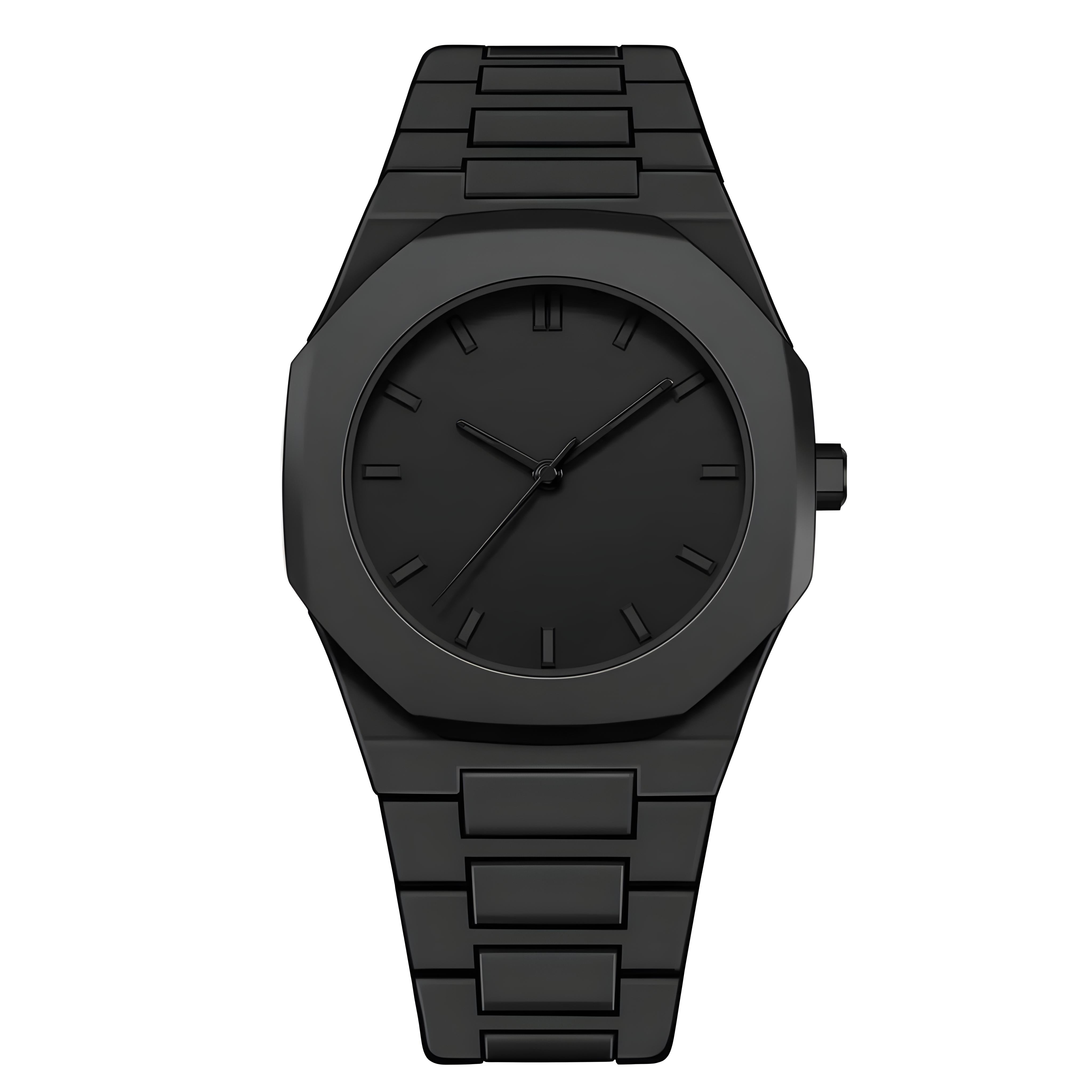 Elevate your style with this sleek all-black wristwatch, designed for those who appreciate understated elegance. Crafted from high-quality plastic/fiber material, it offers a lightweight yet durable build for everyday comfort. The watch features a clean matte finish with a matching black dial, simple hour markers, and a sturdy linked strap that blends seamlessly into the case. Its timeless design makes it perfect for both casual and formal wear.
