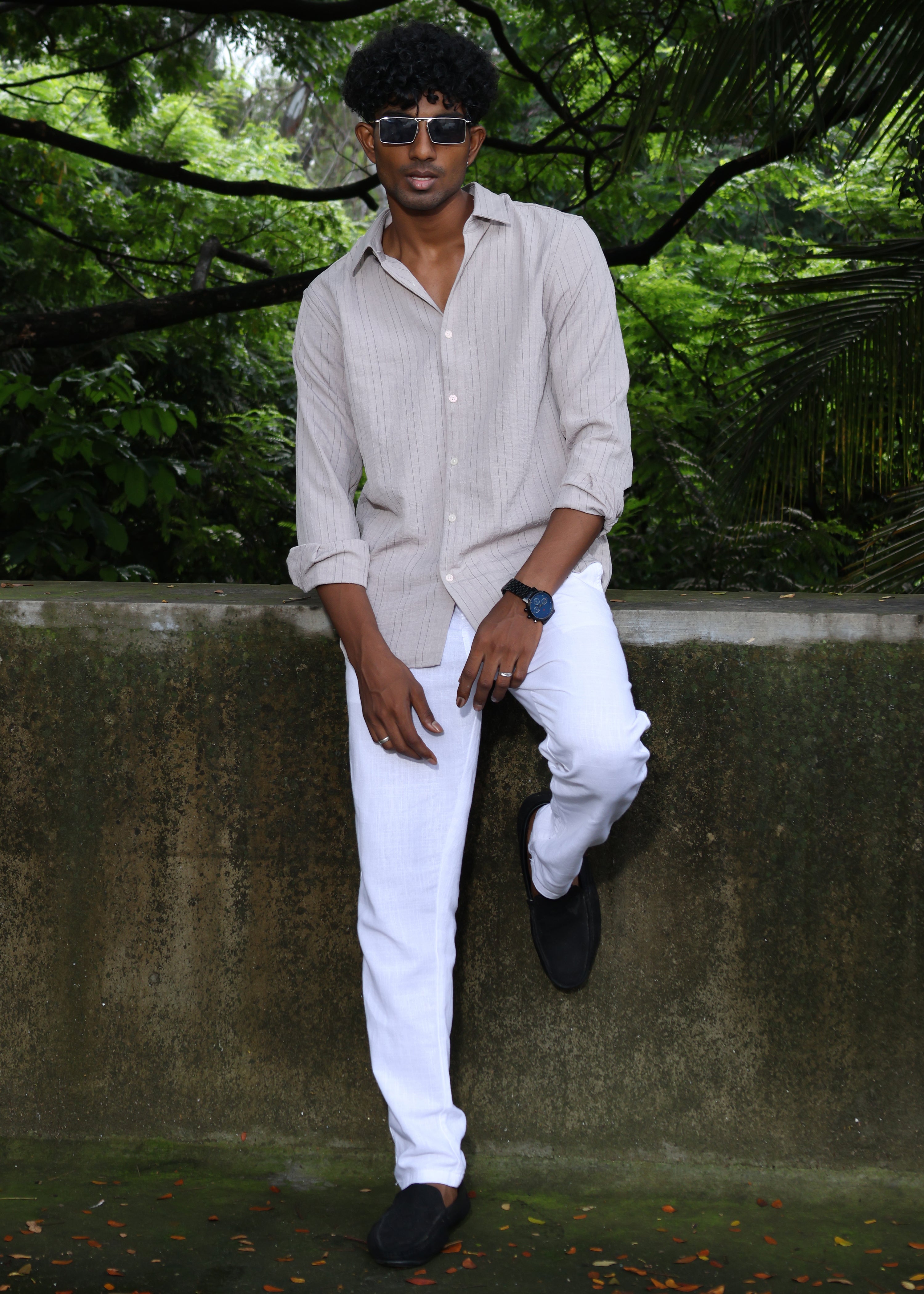 Step up your style with this men’s classic striped casual shirt, designed with subtle vertical stripes that add a modern yet timeless appeal. Made from breathable, lightweight fabric, it offers comfort without compromising on elegance. Featuring a spread collar, full button-down front, and versatile long sleeves that can be rolled up for a relaxed vibe, this shirt makes the perfect choice for both office wear and casual settings. Pair it with trousers for a sharp look or with jeans for a laid-back weekend style.