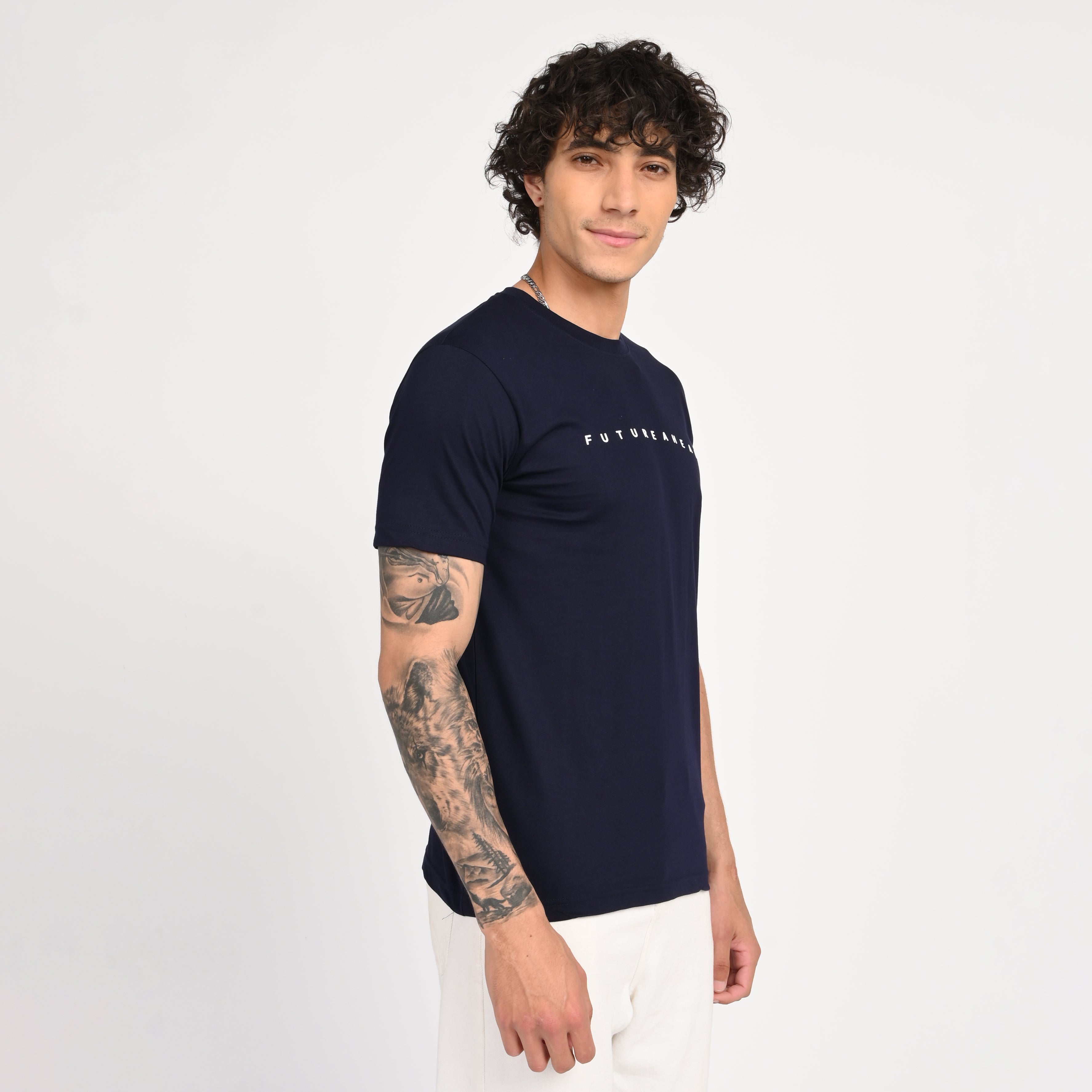 Stay effortlessly stylish with this minimal graphic t-shirt featuring a clean and modern text print across the chest. Designed with a classic crew neck and short sleeves, it offers a comfortable fit and soft, breathable fabric for everyday wear. A perfect blend of simplicity and edge for your wardrobe staples.
