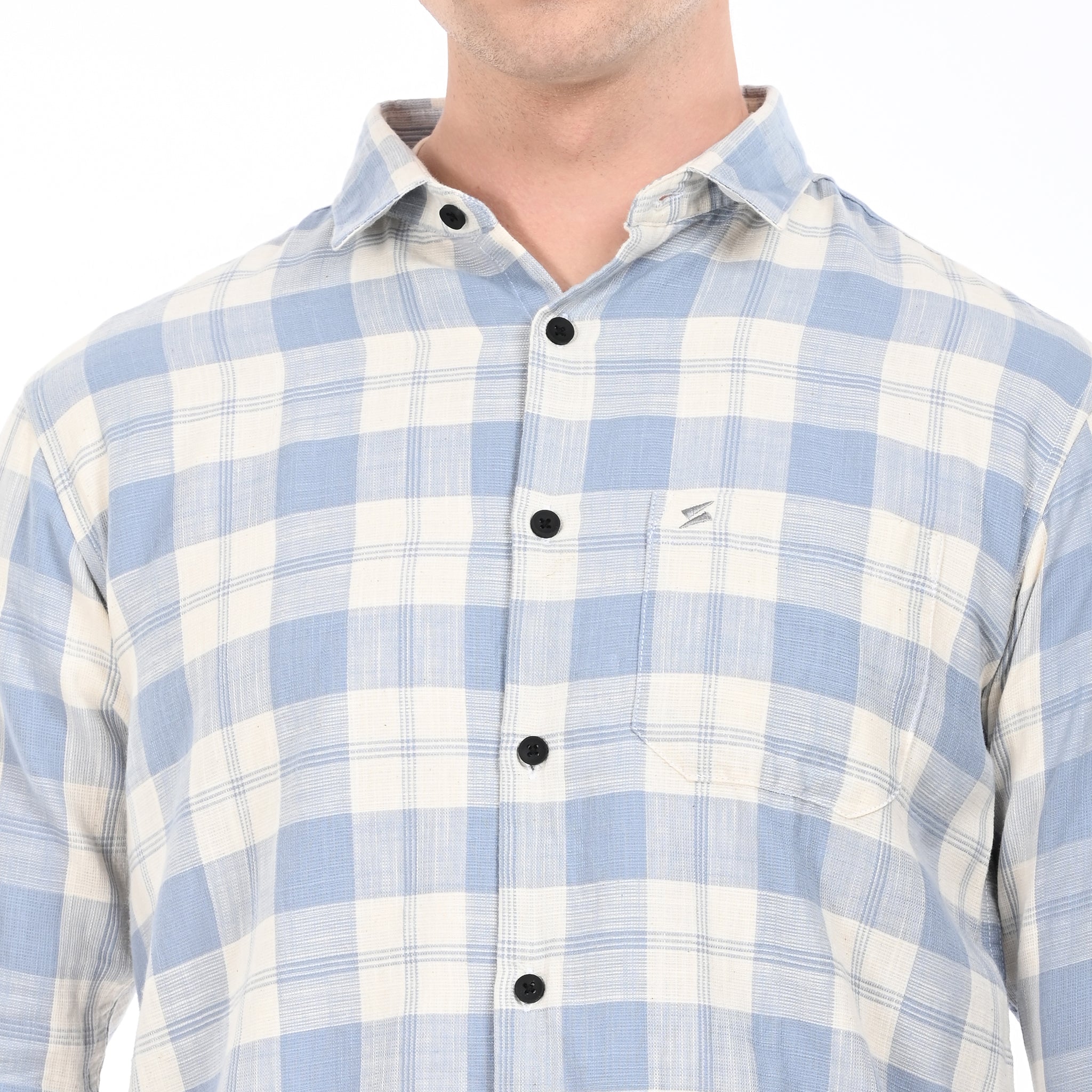 ✔ Pattern: Classic checkered design in soothing sky blue and cream tones.