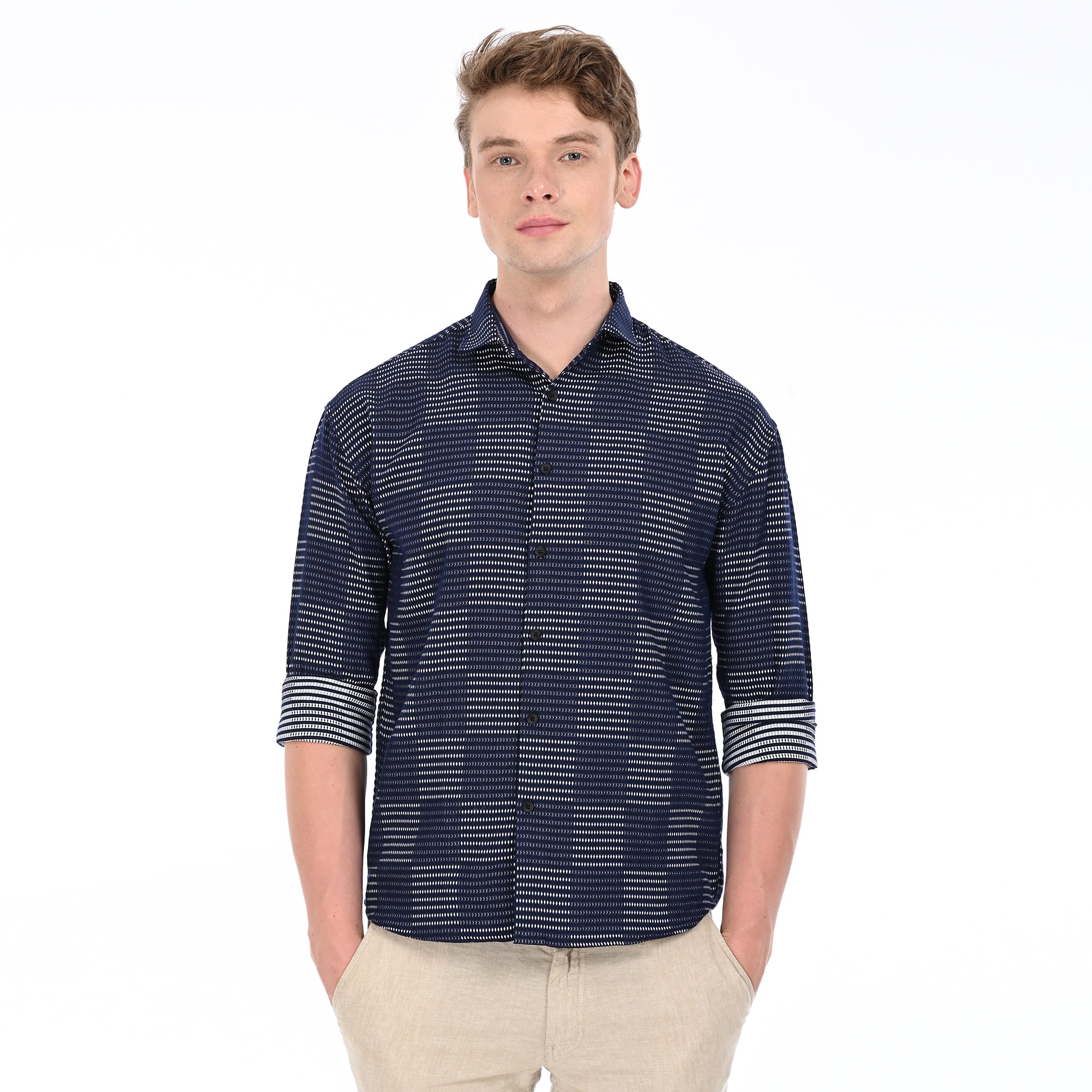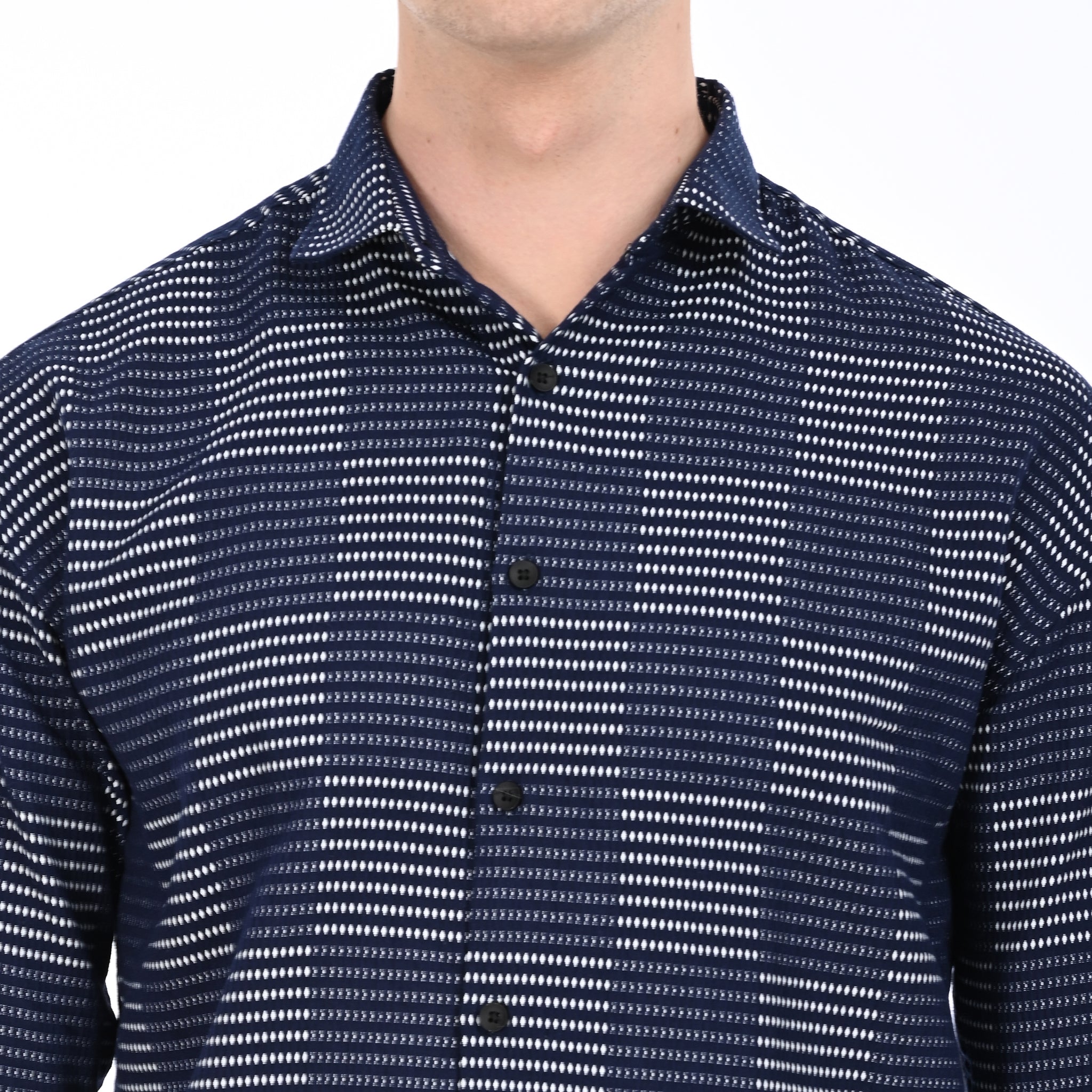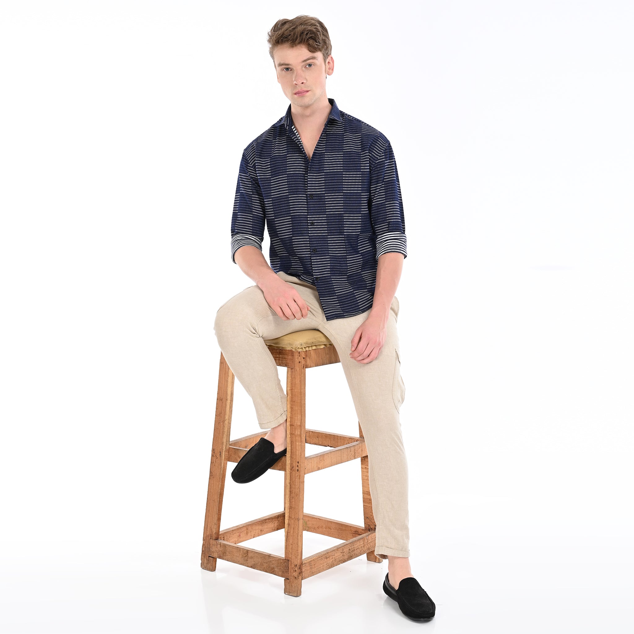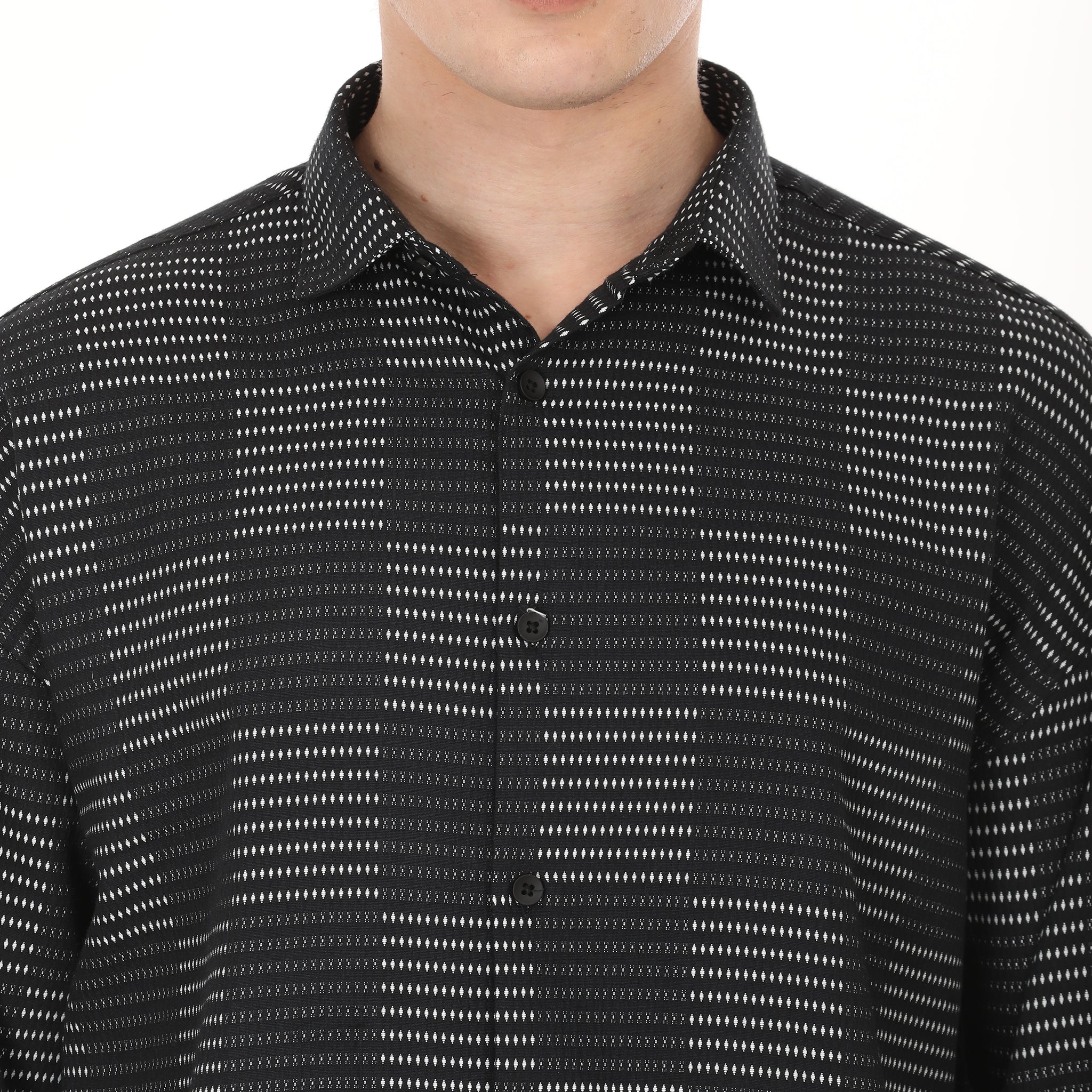 Upgrade your wardrobe with this stylish full-sleeve shirt featuring a modern micro geometric pattern. Designed for both casual and semi-formal occasions, this shirt offers a sleek and sophisticated look. Crafted from premium-quality fabric, it ensures all-day comfort while maintaining a sharp and structured fit. The intricate geometric detailing adds a touch of uniqueness, making it a standout piece for any setting. Pair it with trousers for a polished office look or style it with jeans for a refined casual vibe.