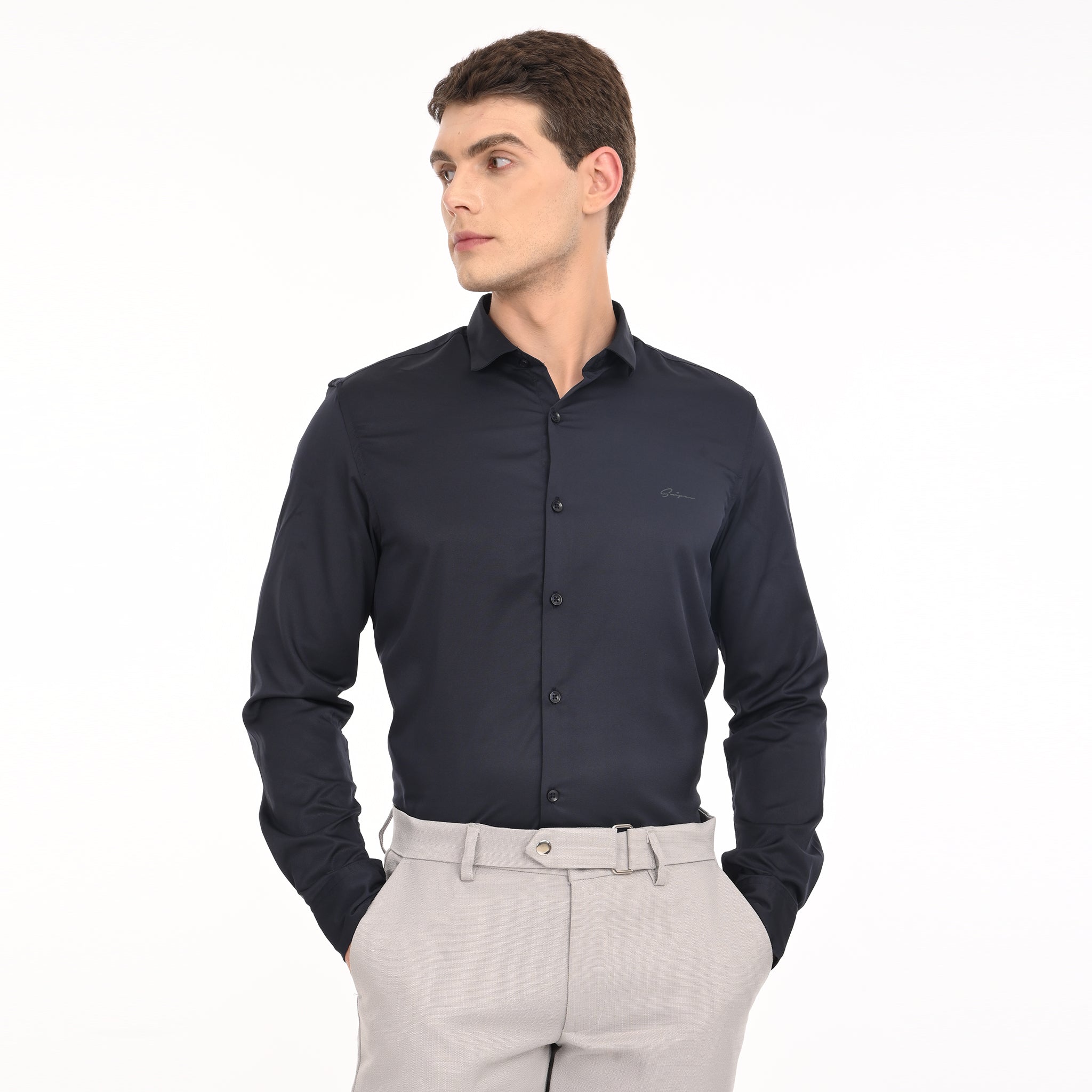 Command attention with the Sleek Satin Shirt—where modern luxury meets effortless charm.