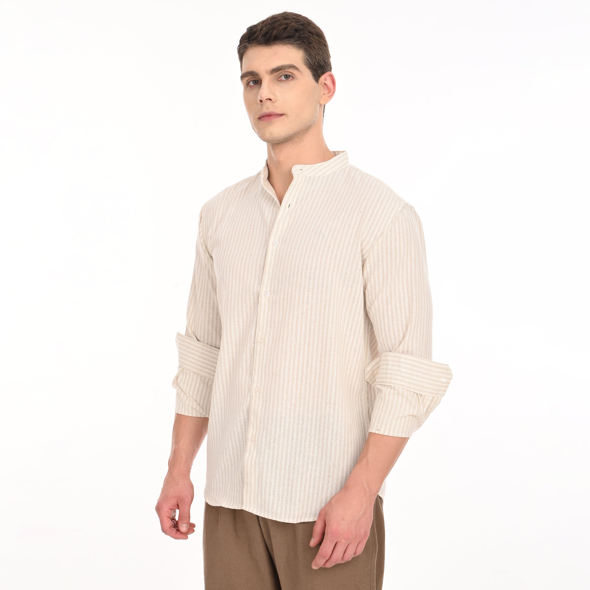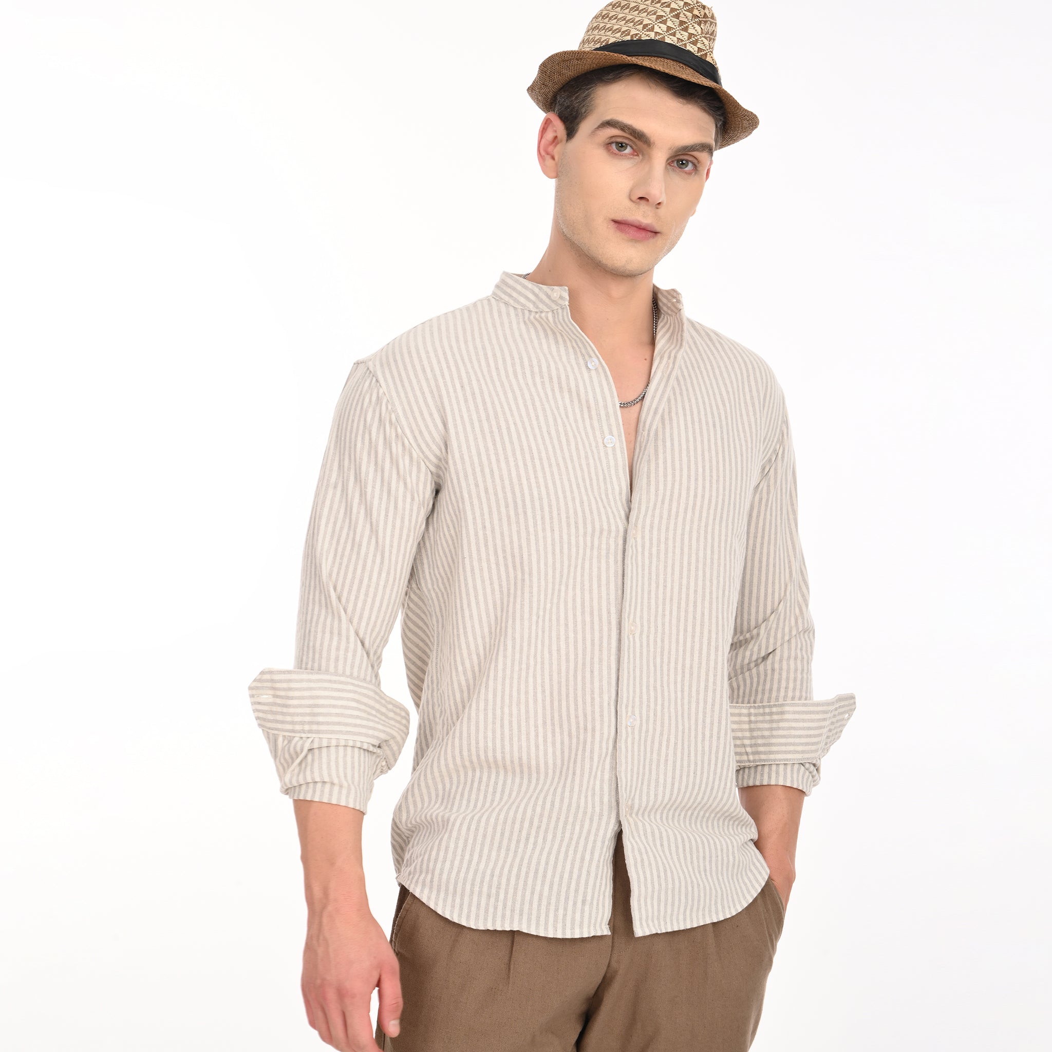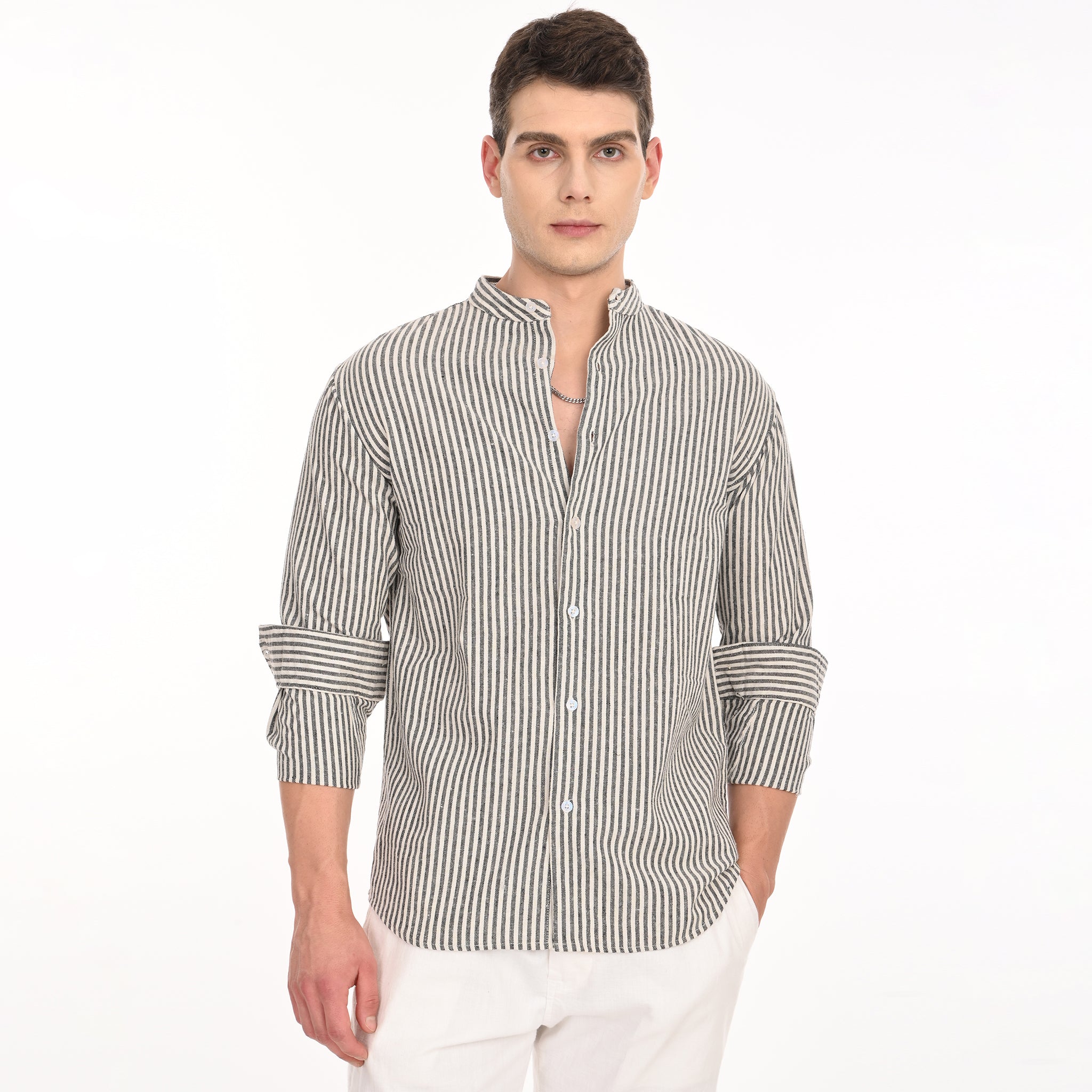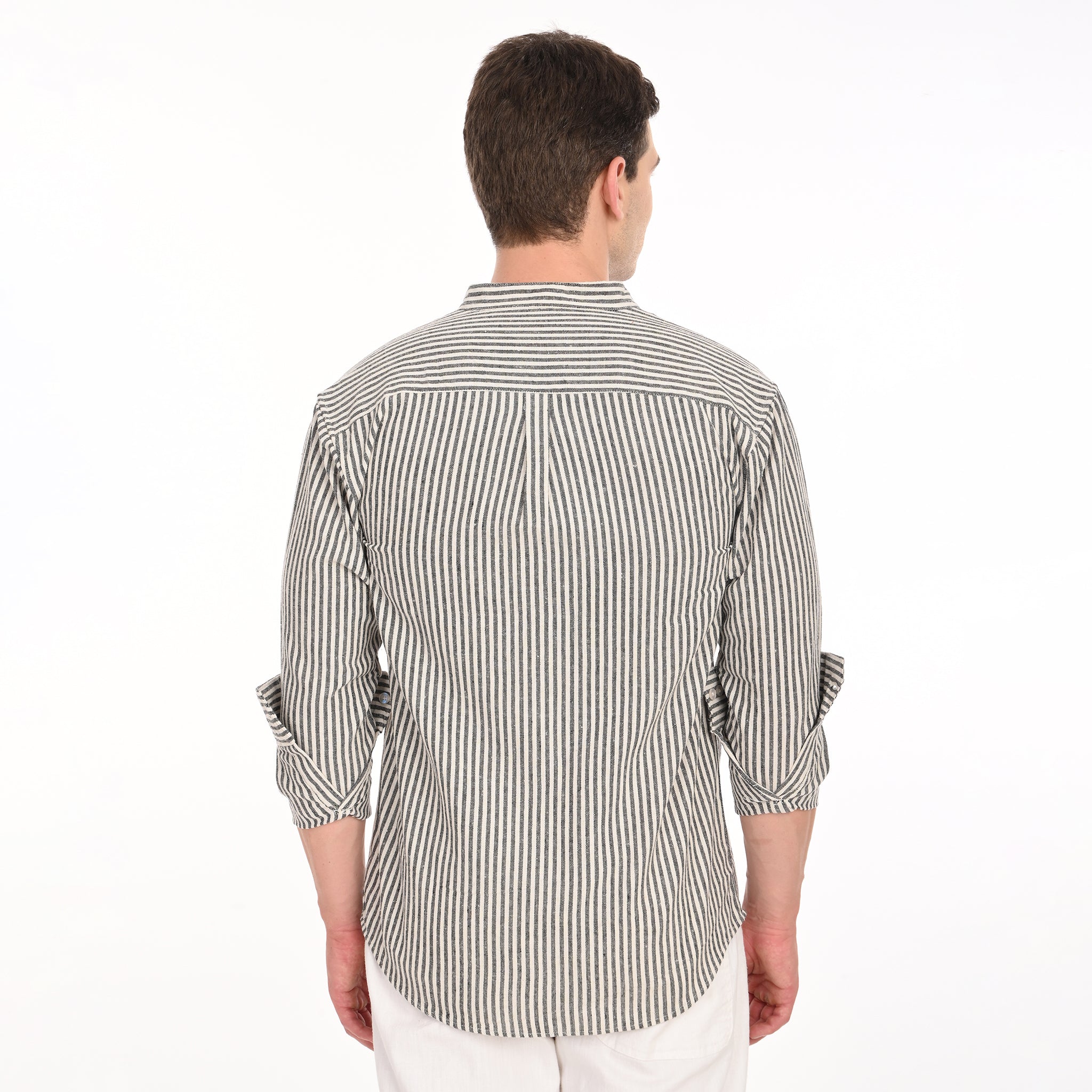 Elevate your casual style with this Striped Casual Shirt featuring a sleek Mandarin collar. The subtle vertical stripes and refined silhouette make it a versatile staple for both relaxed and smart-casual occasions.