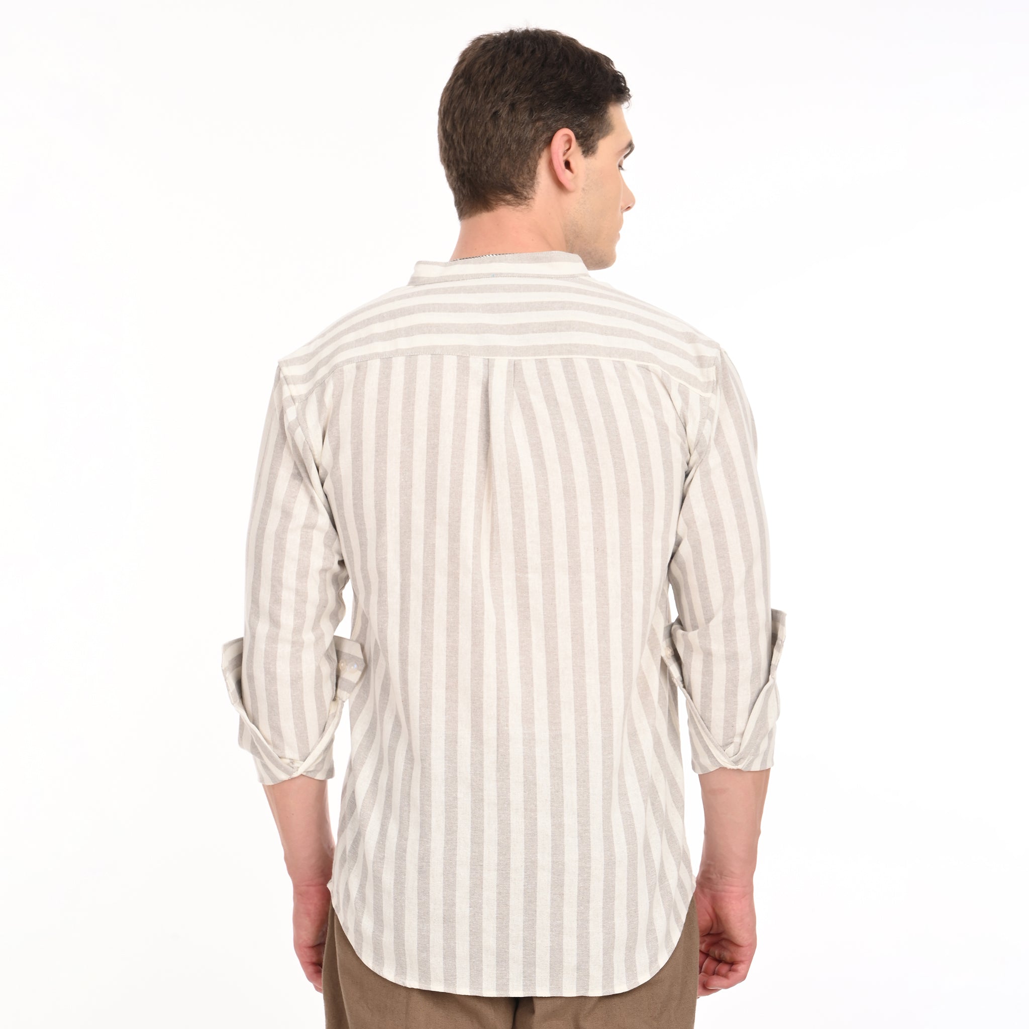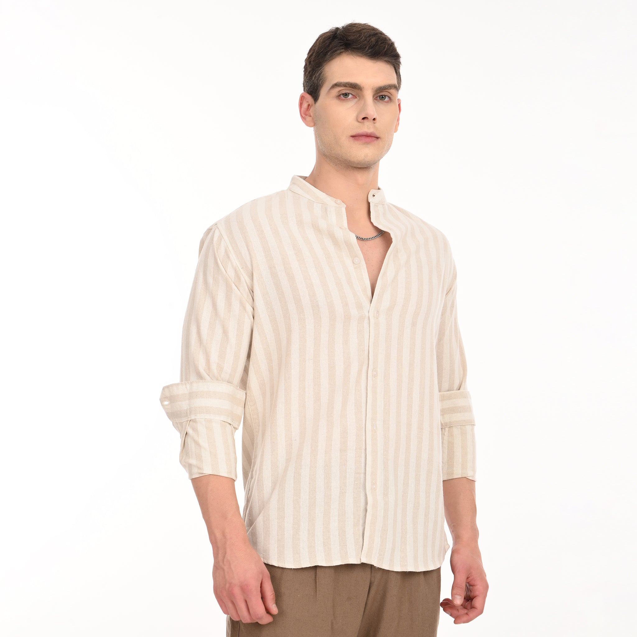 Elevate your casual style with this Striped Casual Shirt featuring a sleek Mandarin collar. The subtle vertical stripes and refined silhouette make it a versatile staple for both relaxed and smart-casual occasions.