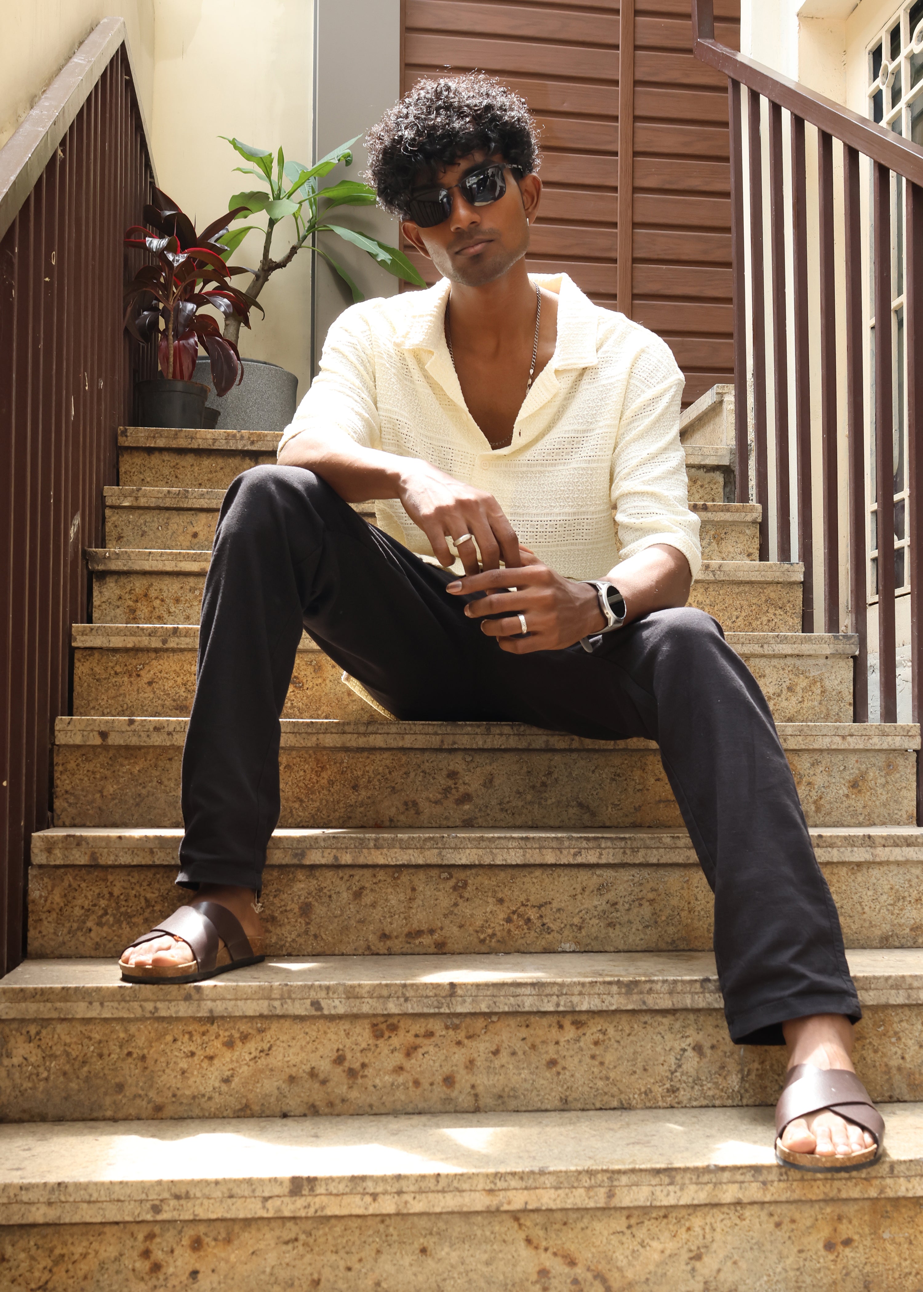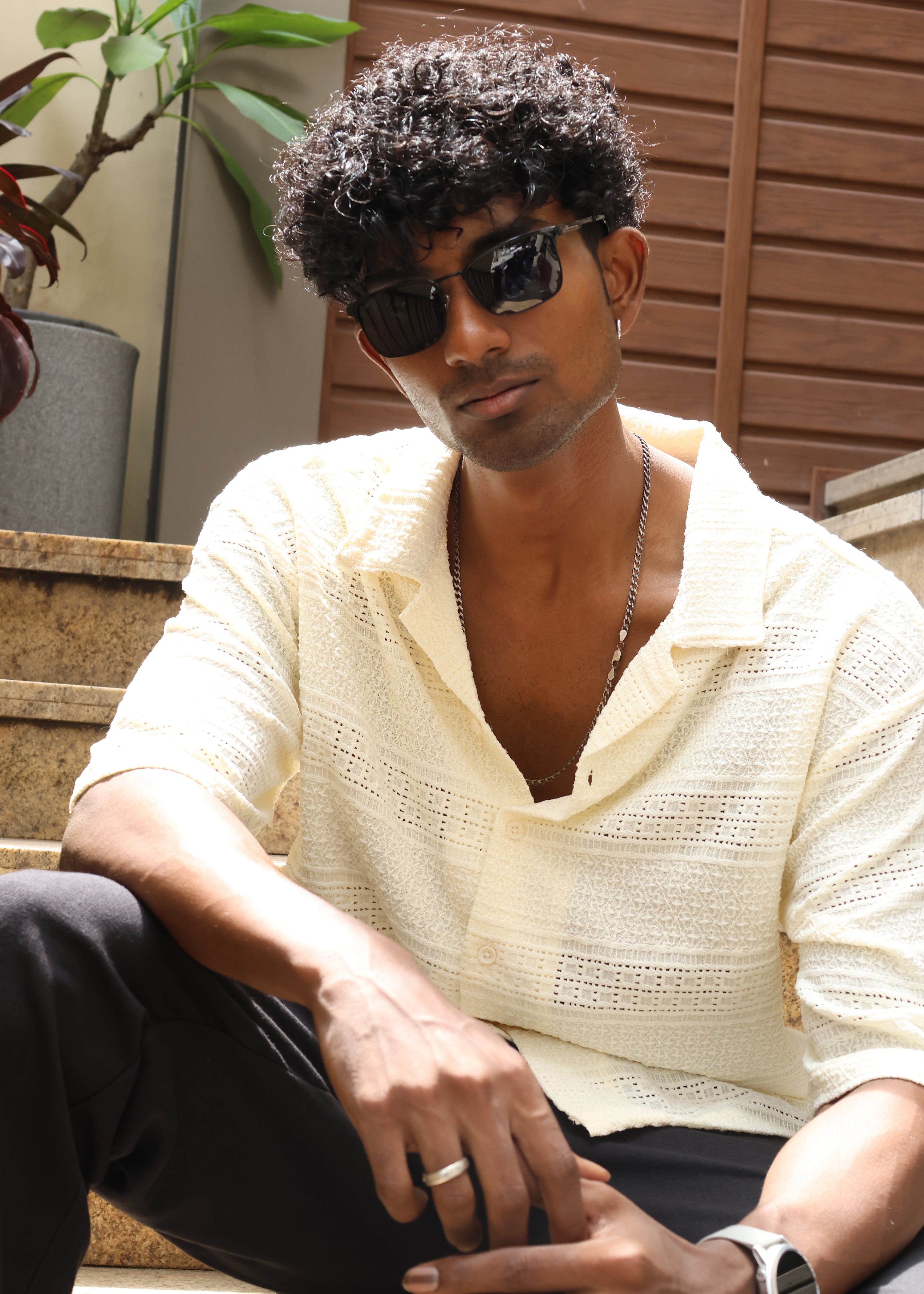 Add a breezy touch to your wardrobe with this textured open-weave half-sleeve shirt. Featuring a relaxed fit and breathable fabric, this shirt is designed for effortless comfort and style. The subtle open-knit detailing enhances its airy feel, making it perfect for warm-weather outings, casual gatherings, or laid-back evenings.