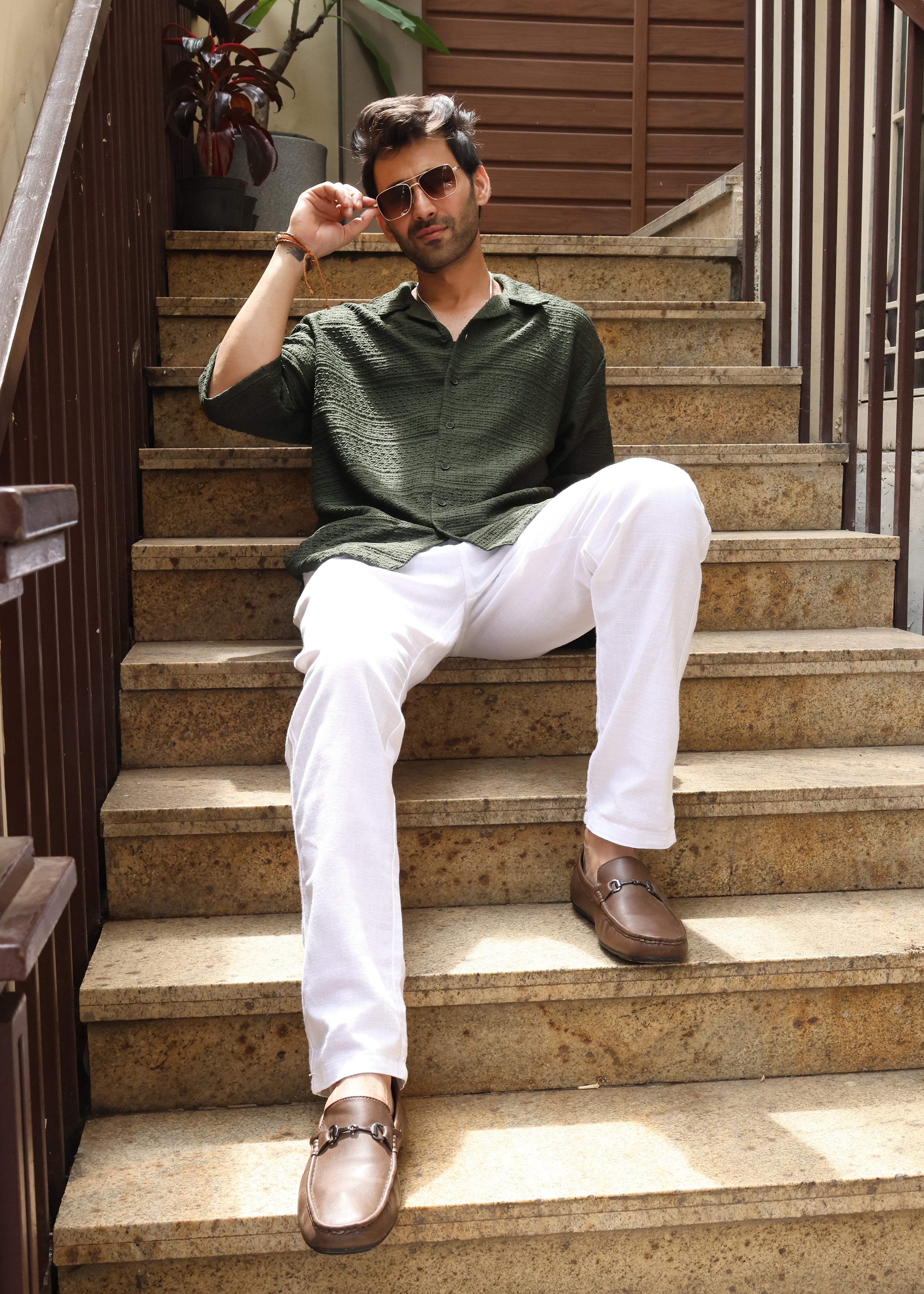 Add a breezy touch to your wardrobe with this textured open-weave half-sleeve shirt. Featuring a relaxed fit and breathable fabric, this shirt is designed for effortless comfort and style. The subtle open-knit detailing enhances its airy feel, making it perfect for warm-weather outings, casual gatherings, or laid-back evenings.