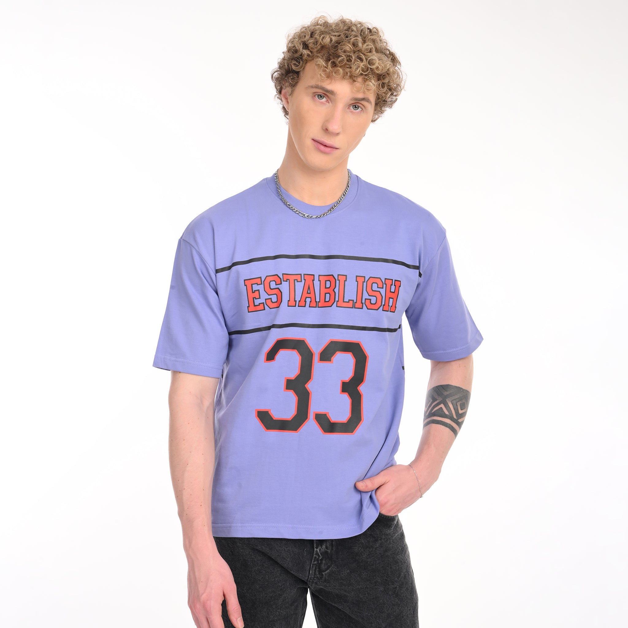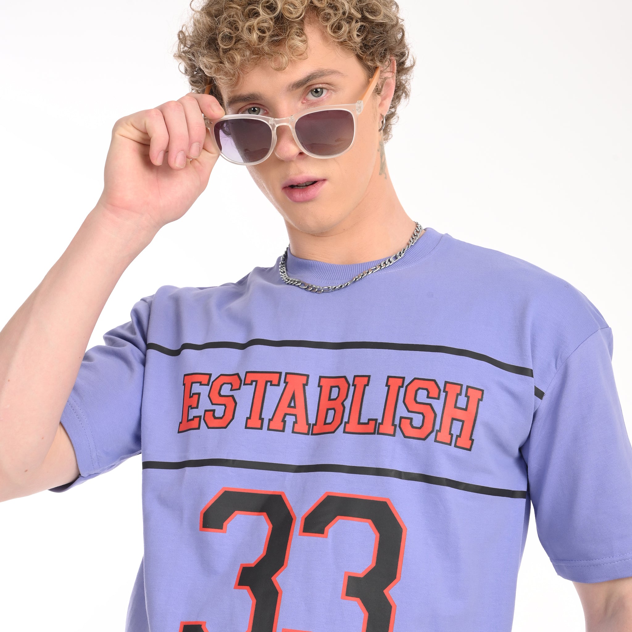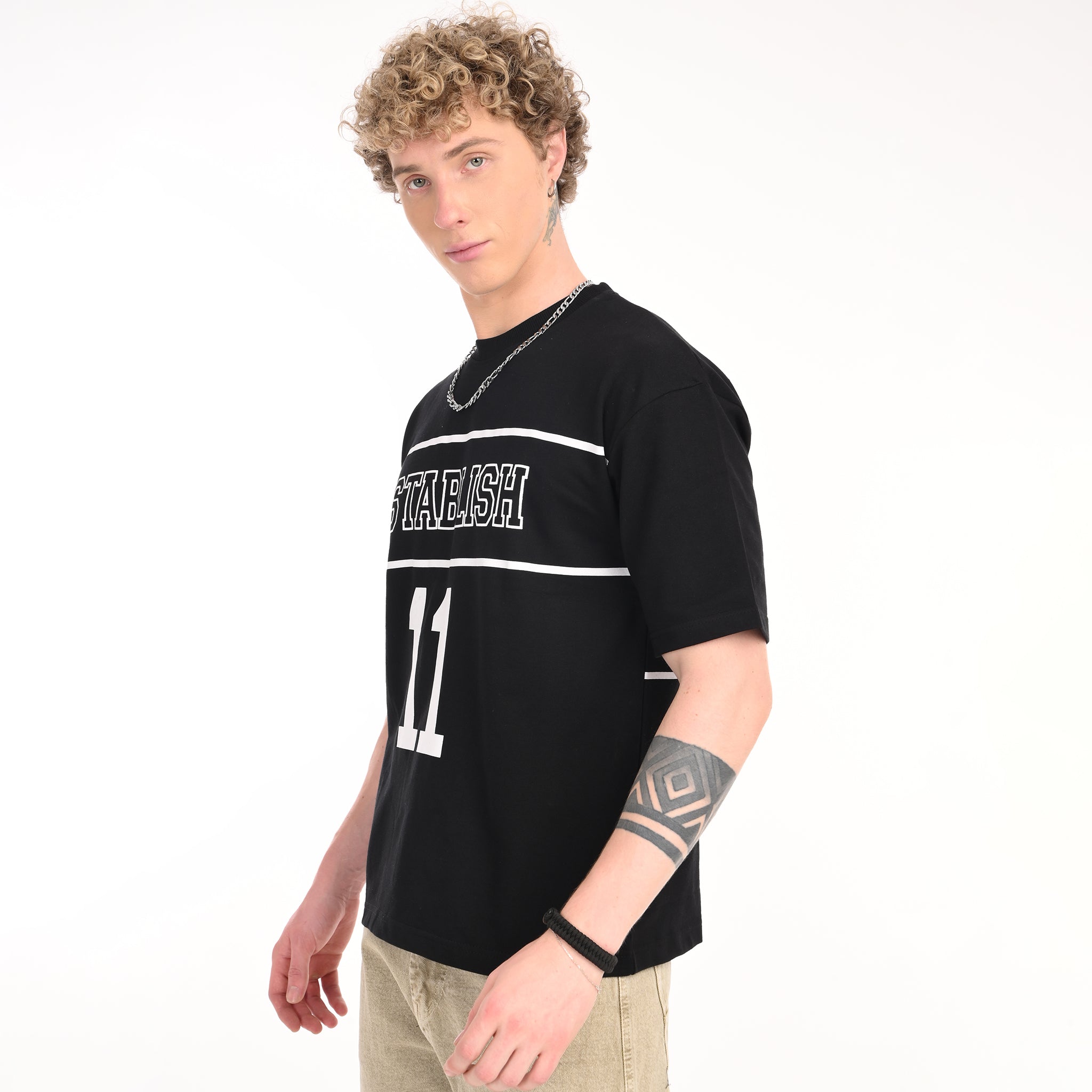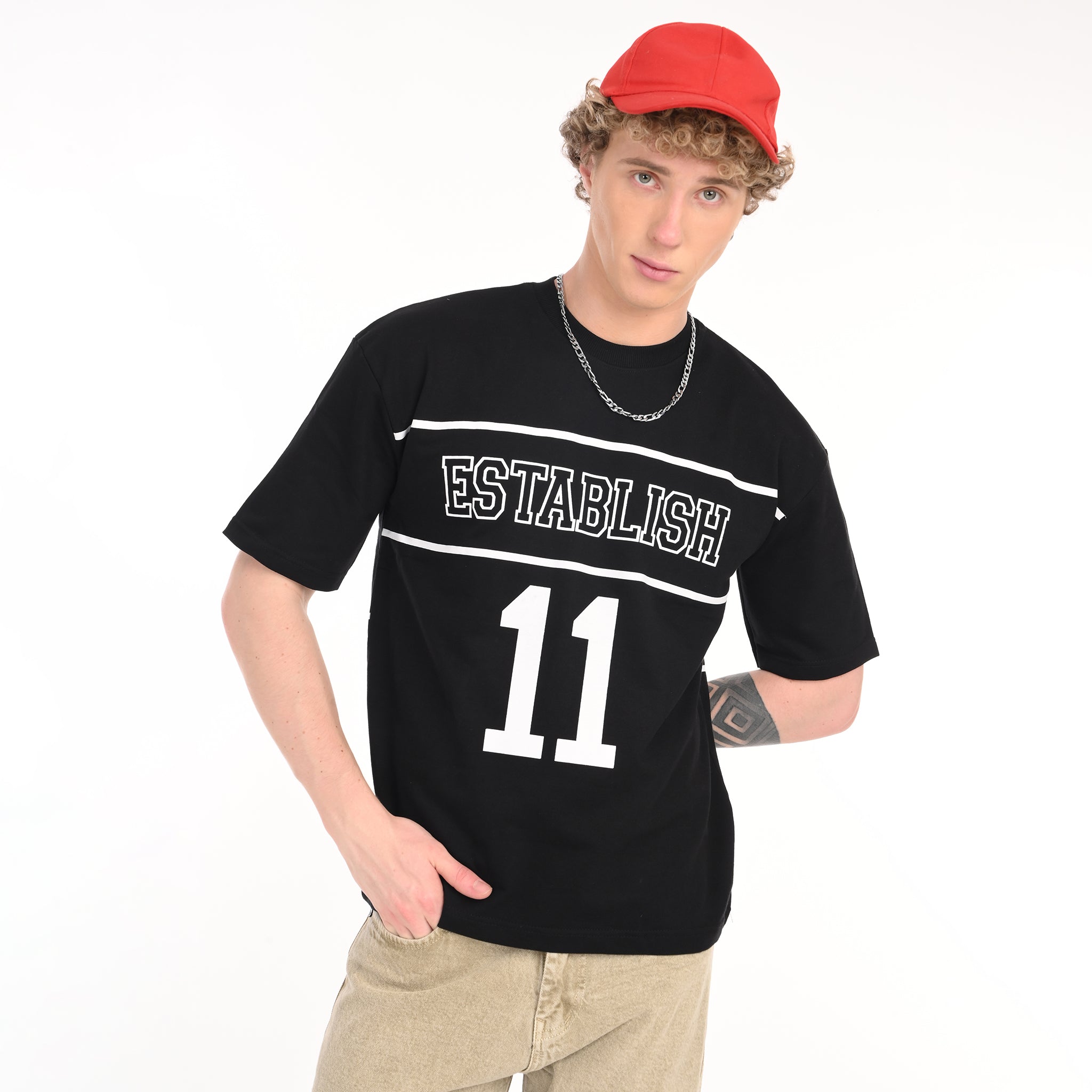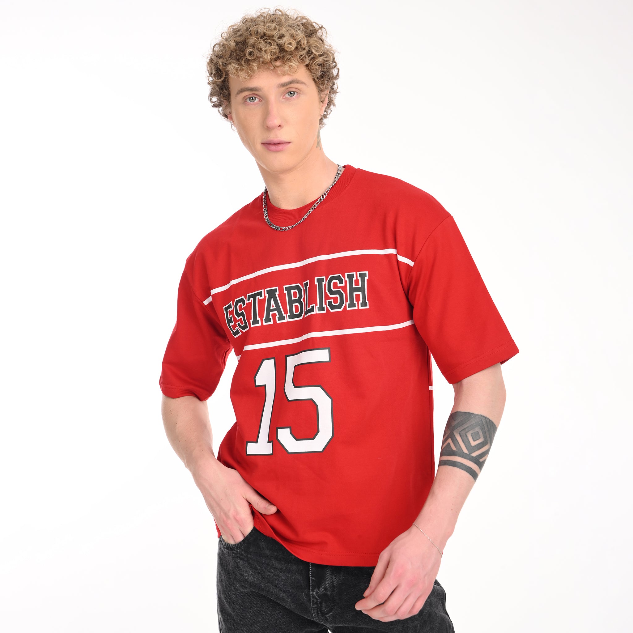 Add a sporty edge to your casual wardrobe with this Varsity Oversized Printed T-Shirt. Featuring bold "ESTABLISH" lettering and a prominent "15" number print, this piece channels vintage athletic vibes with a modern streetwear twist.